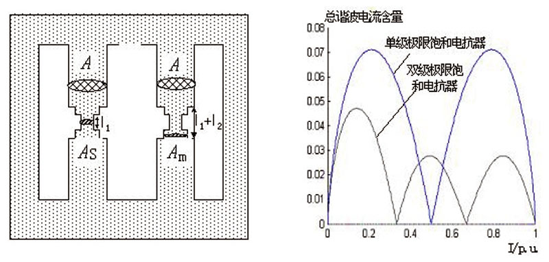 The magnetron reactor is one of the controllable reactors, the core has a section with a small load area, and only a small section of the magnetic circuit is saturated in the entire capacity adjustment range, and the remaining sections Both are in an unsaturated linear state, and the capacity of the reactor is changed by changing the degree of path saturation of the fractional surface. The magnetron reactor has a simple structure and low cost, and has great application potential for improving the power transmission capacity of the power grid, adjusting the grid voltage, compensating for reactive power, and limiting overvoltage.